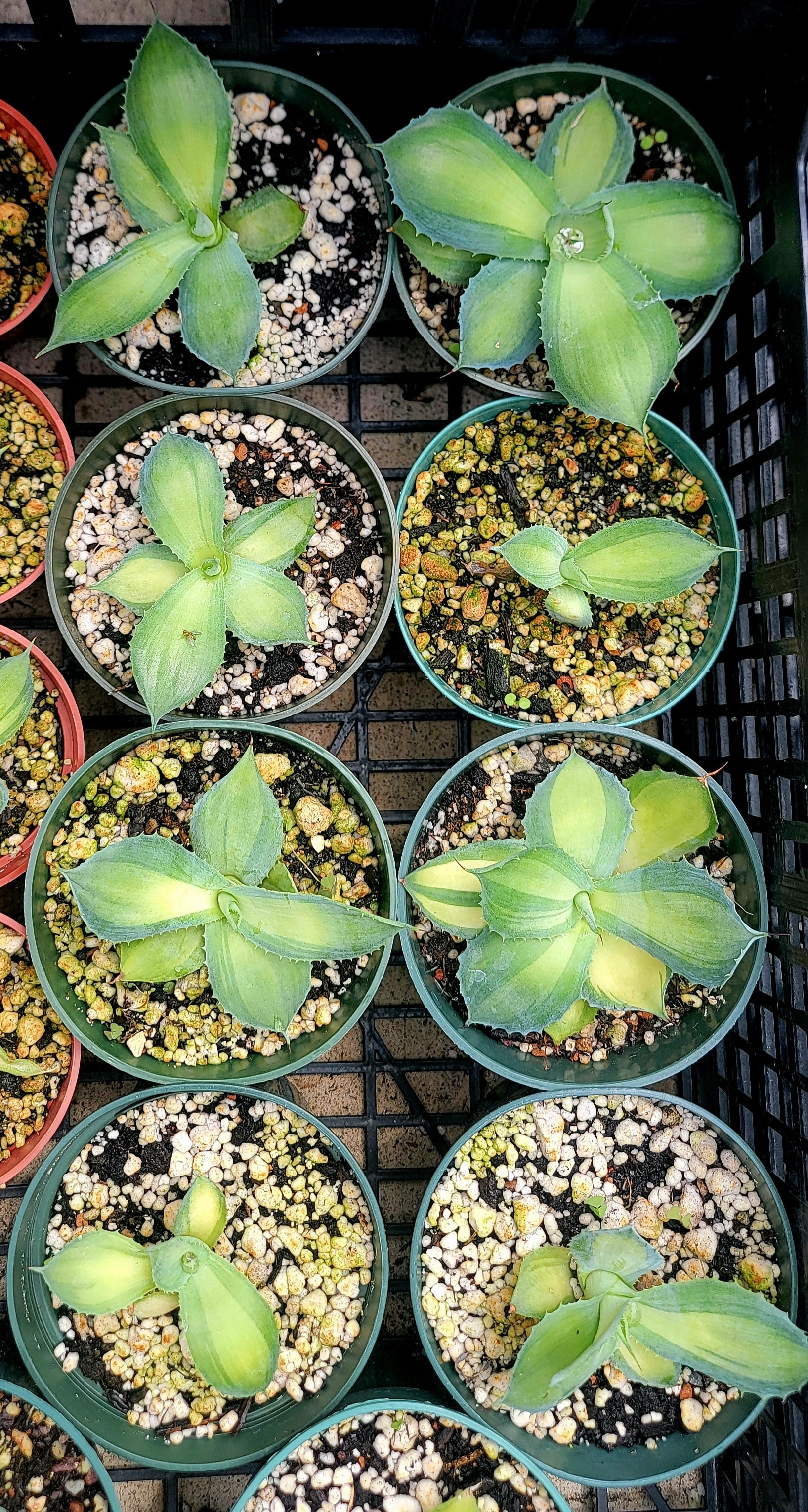 A. isthmensis is closely related to A. potatorum and circulated in cultivation as a dwarf form of that species until described in 1993 by García-Mendoza & Palma Cruz. That nomenclatural history is part of the inspiration for the catchy name for this cultivar coined by Kelly Griffin.
