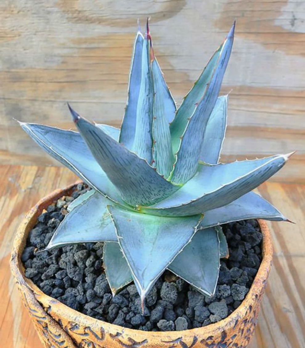 Agave pumila, also known as Miniature Agave or Dwarf Century Plant, is a compact and slow-growing agave species native to Mexico. It's characterized by its small size, with rosettes typically reaching 15-20 cm in diameter. Agave pumila is known for its dimorphic nature, meaning it has distinct juvenile and mature forms. The juvenile form is a small, suckering rosette with stubby, gray-green leaves, while the mature form is an open, solitary rosette with longer, paler leaves.