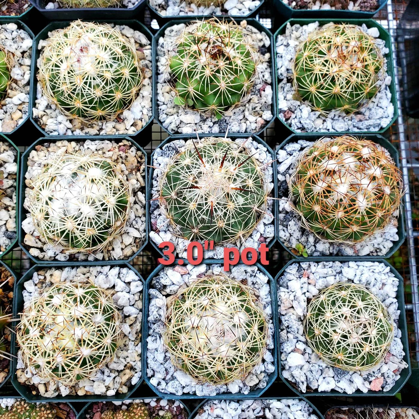 Coryphantha retusa is a small greyish-green cactus thickly covered with tawny wool. Many of the yellowish-brown spines are curved backward. The flowers are deep yellow and borne from the centre of the plant. It flowers profusely.