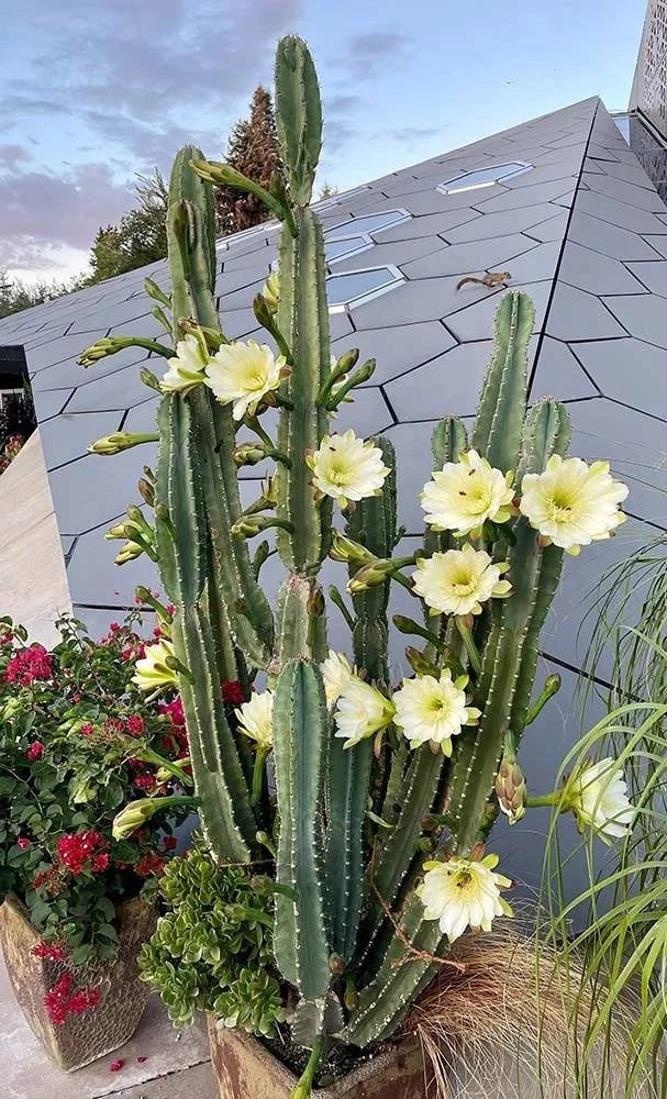 The Cereus Jamacaru is a tall, straight-growing, cylindrical cactus originating from South America. Also known as Queen of the night or Cereus Jamacaru De Candolle, their attractive flowers and berries and their eye-catching shape make it a wonderful ornamental plant.