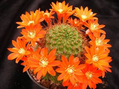 Rebutia fiebrigii, the orange crown cactus or flame crown, is a species of flowering plant in the cactus family that is native to exposed rocky plateaux in the Bolivean Andes, at altitudes of 2,100–4,000 m (6,900–13,100 ft) above sea level. It consists of a solitary ball some 15 cm (5.9 in) in diameter, covered in tubercles and silky hairs, with brilliant orange daisy-like flowers. In time these balls multiply to form mounds.